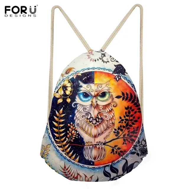Best Offers FORUDESIGNS Drawstring Bags Womens Sport Bag for Fitness Oil Painting Owl Printed Gym Sack for Outdoor Training Storage Backpack
